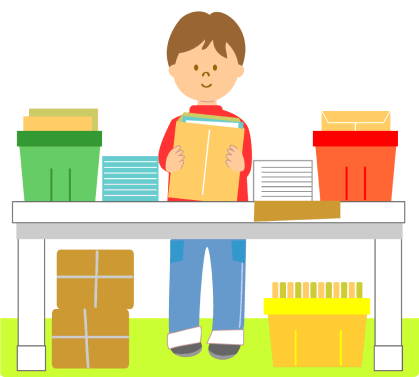 商品を封筒や袋などに入れて完成させる作業です。 糊付けや用紙と一緒に品物を入れるのも可能です。